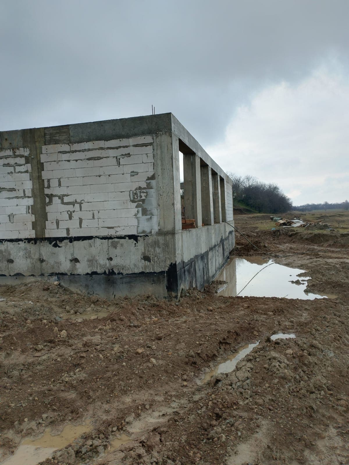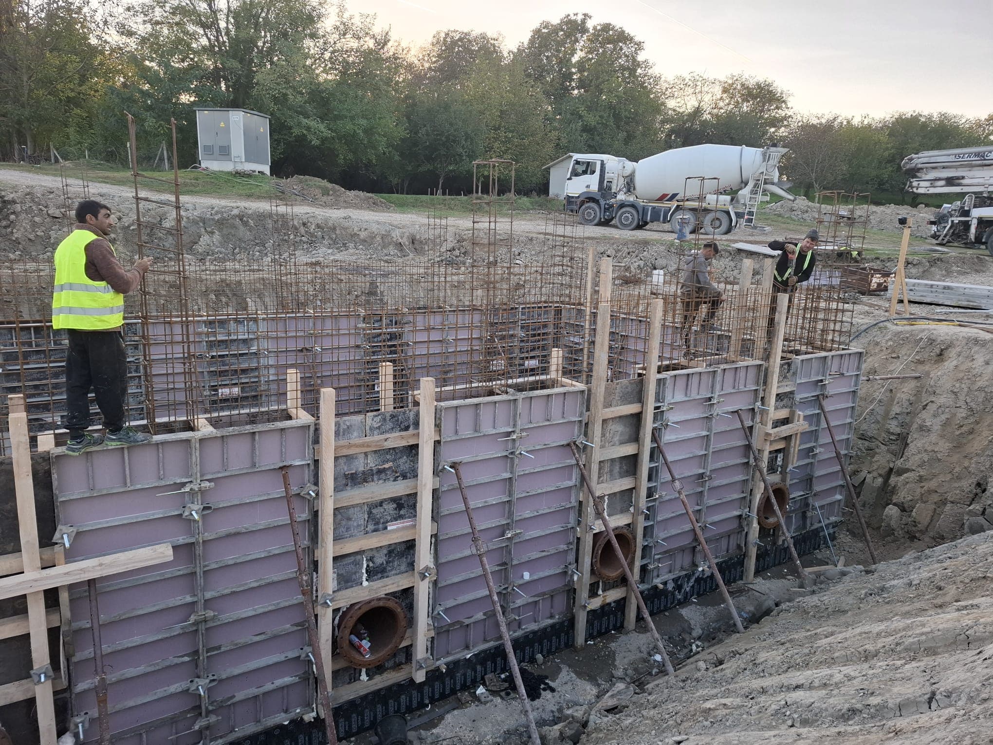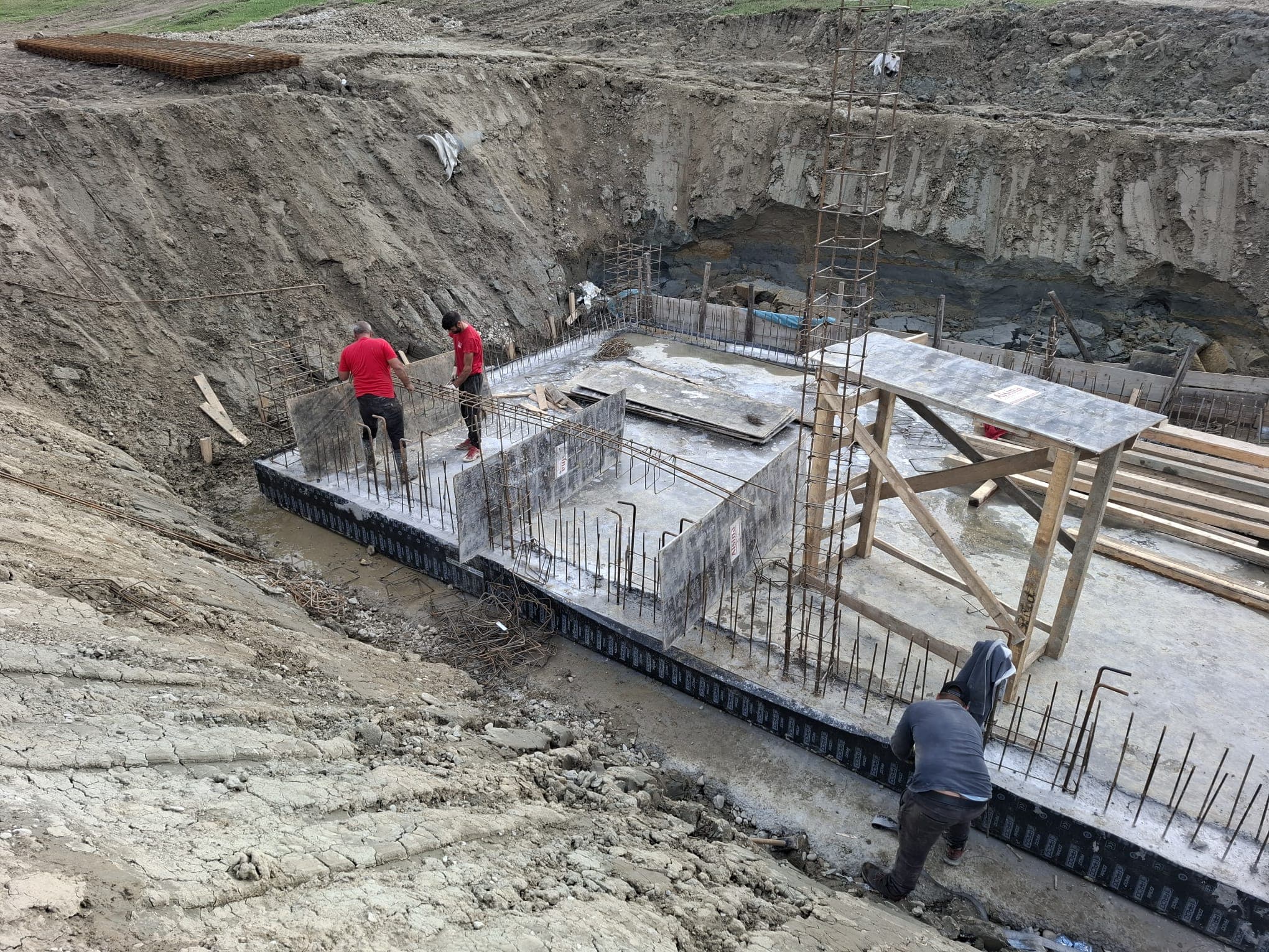 Pe fundul excavației s-a turnat un strat de beton de egalizare, urmat de aplicarea unui sistem de hidroizolație bituminoasă cu ardezie.