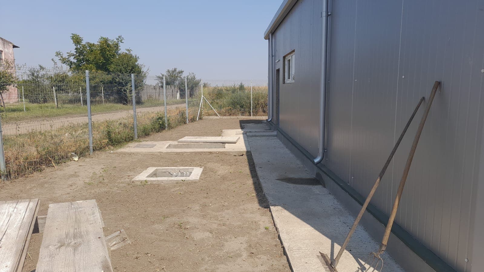 Am construit 2 hale pentru acest client: o hală de depozitare cereale (575 mp cu zid de 2,5 m) și una de procesare în care clientul își va face o mică fabrică de ulei. (120 mp cu zid de 2,7m).